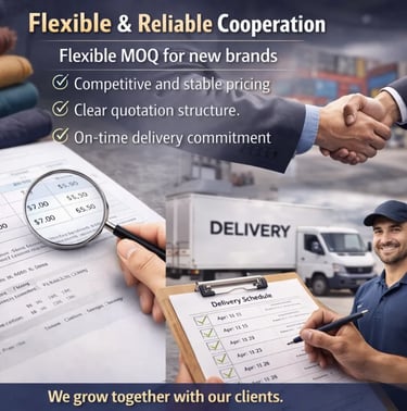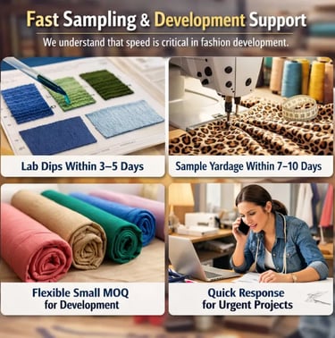 Nous accompagnons les marques, les designers et les équipes d’approvisionnement avec des services fiables, efficaces et orientés solutions.